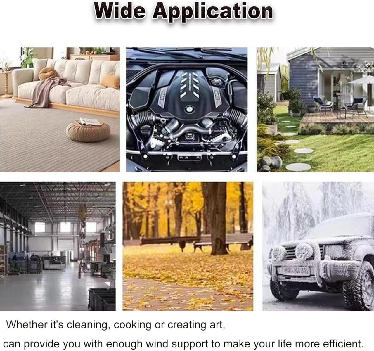 - Ideal para el Cuidado del Automóvil: Su potente chorro de aire te permitirá eliminar rápidamente el polvo y la suciedad de tu automóvil, o incluso secar tu vehículo después de un lavado.